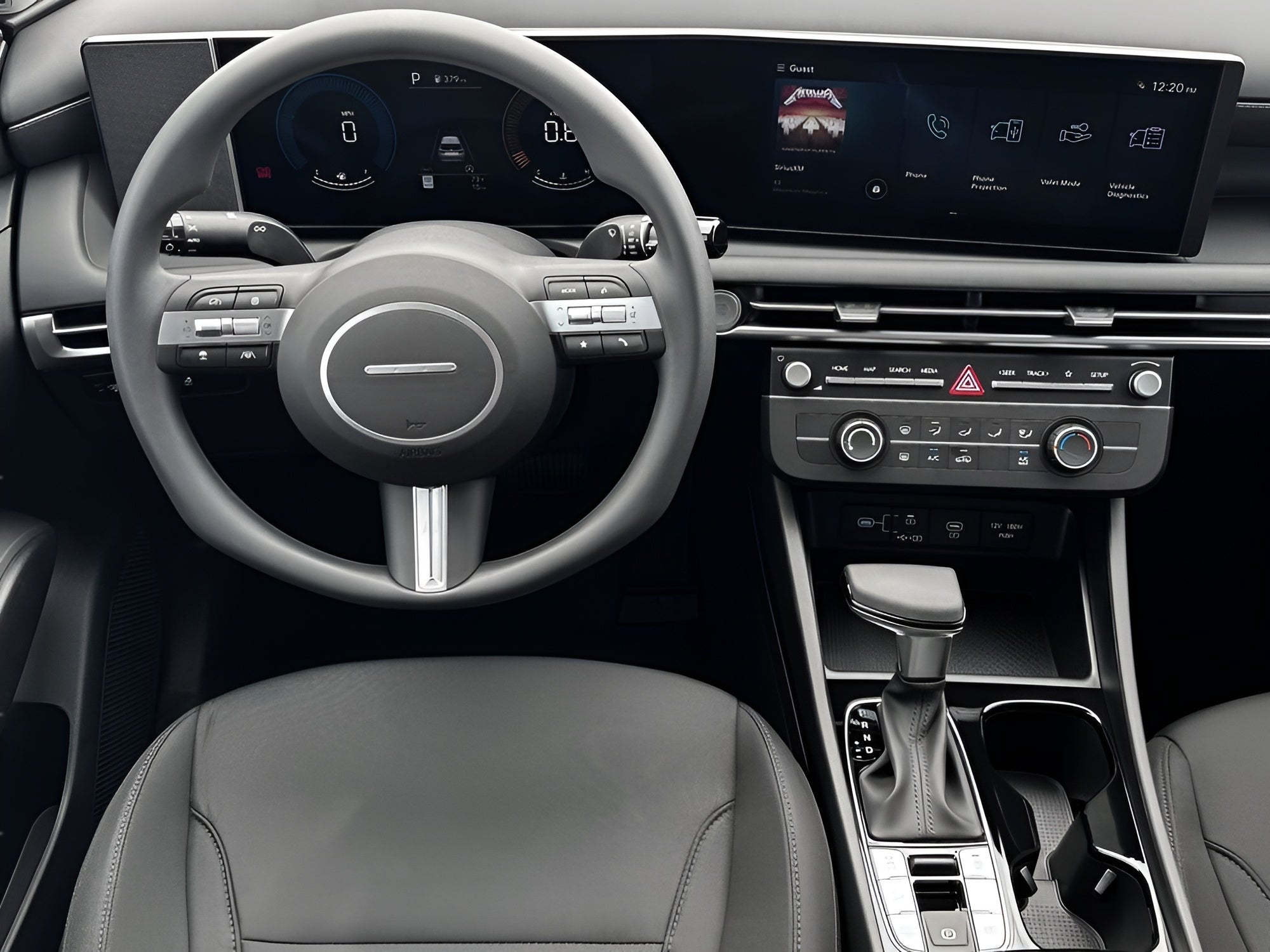 - Radio: AM/FM/HD Audio System -inc: 12.3" color touchscreen display, 6 speakers, SiriusXM satellite radio system (3-month trial subscription), wireless Apple CarPlay and Android Auto integration, controller OTA update capability, Blue Link connected car system and USB connectivity