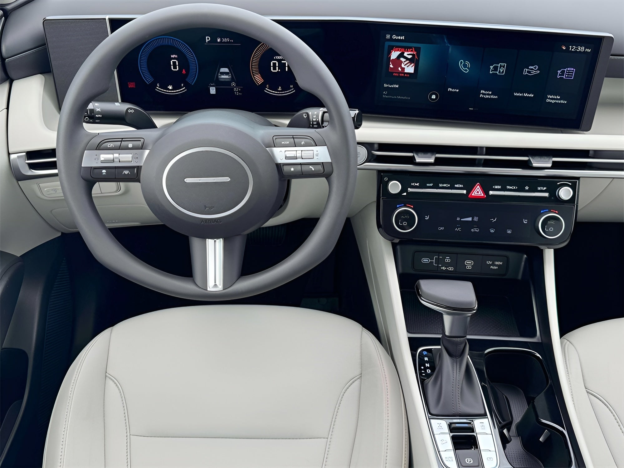 - Radio: AM/FM/HD Audio System -inc: 12.3" color touchscreen display, 6 speakers, SiriusXM satellite radio system (3-month trial subscription), wireless Apple CarPlay and Android Auto integration, controller OTA update capability, Blue Link connected car system and USB connectivity