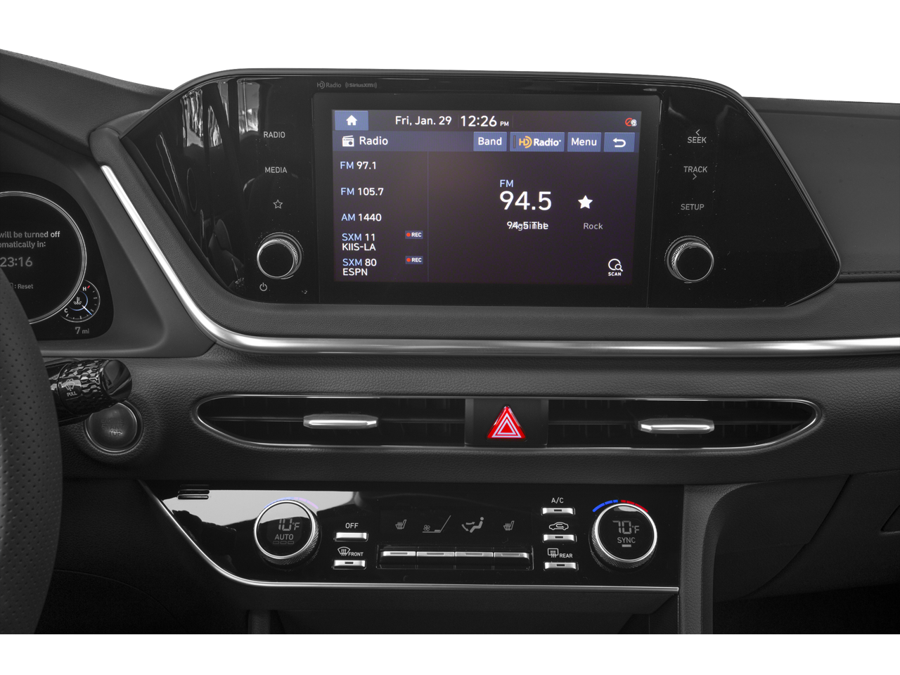 - Radio: AM/FM/MP3/HD/SiriusXM Display Audio -inc: 8" color touchscreen, 6 speakers (2 front door mounted speakers, 2 tweeters and 2 rear speakers), integrated Bluetooth, Blue Link connected car system, Apple CarPlay, Android Auto and USB charge port